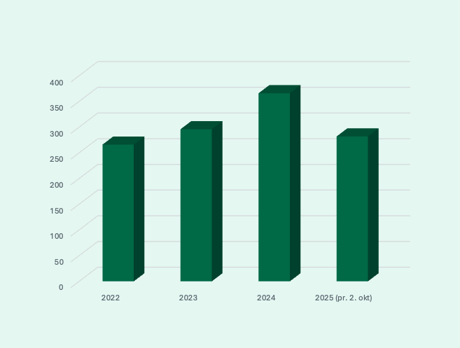Se tallene nedenfor for antall saker NITO-advokatene har mottatt om arbeidsmiljø.